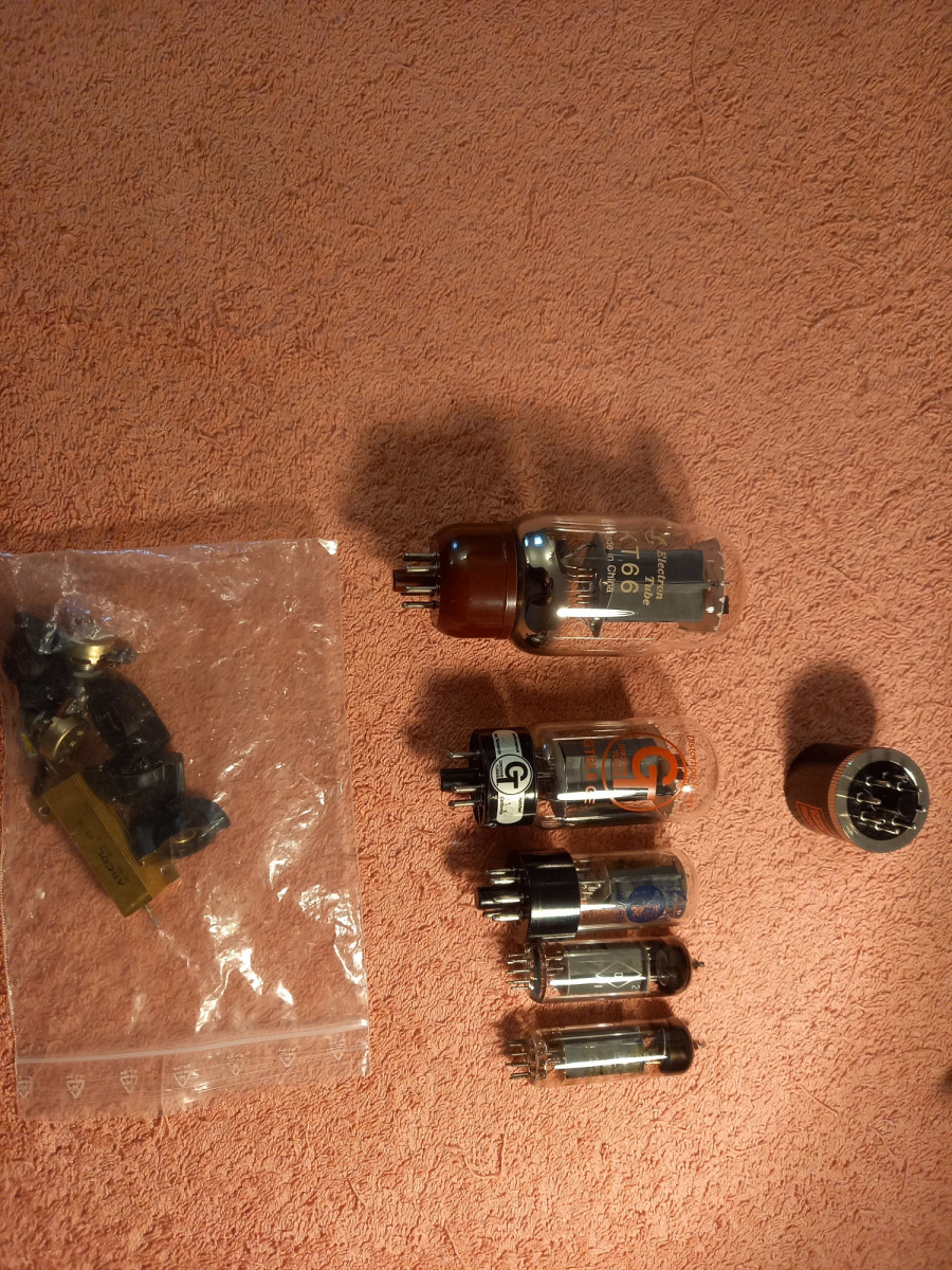 Il fonctionne très bien avec tous les tubes mentionnés. Je fournis avec 1 KT66, 1 GT 6L6 GE (américaine), 1 6V6GT Electro-Harmonix, 1 EL84 Mullard anglaise et 1 6p14 russe.