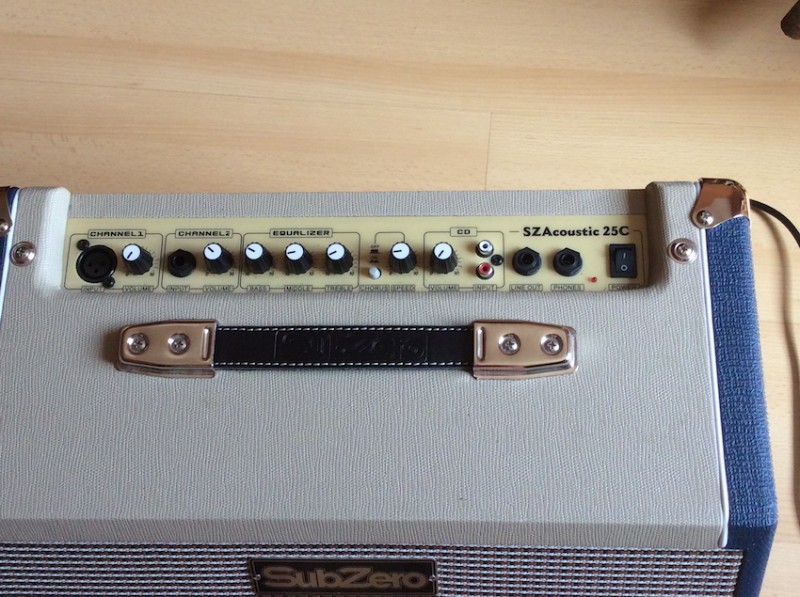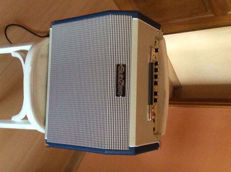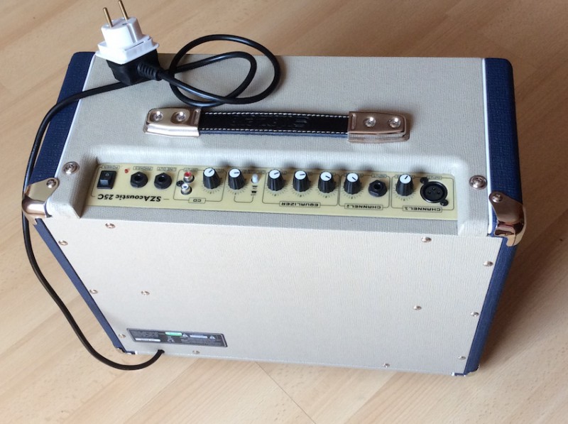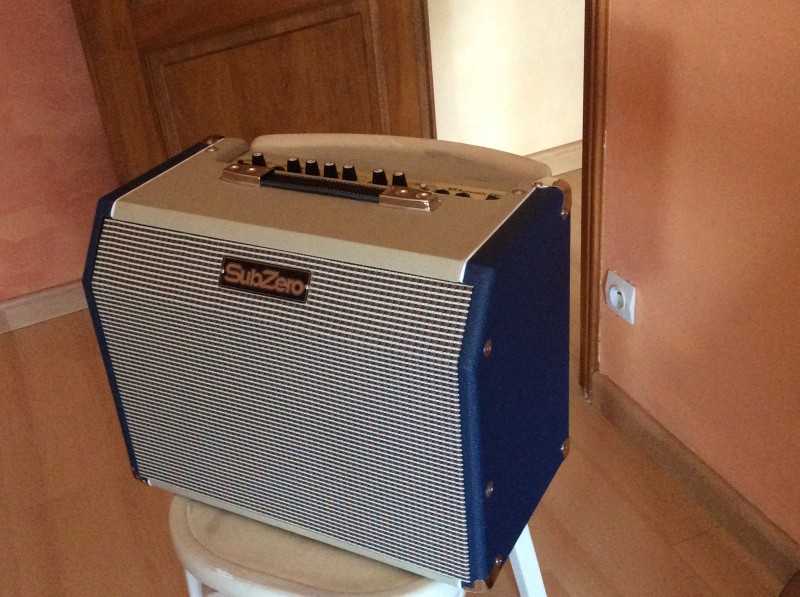 Un copain vend cet ampli pour guitare acoustique,25w, une entrée micro chant, une entrée guitare, équipée de correcteur de sons, effet chorus incorporé,entrée audio pour lecteur CD ou autres état parfait, look original