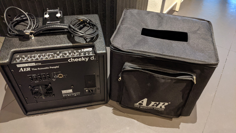 Ampli guitare AER Cheeky D. 12 en très bon état, avec housse, câble d'alim, câble de modulation Cordial , switcher et mode d'emploi.