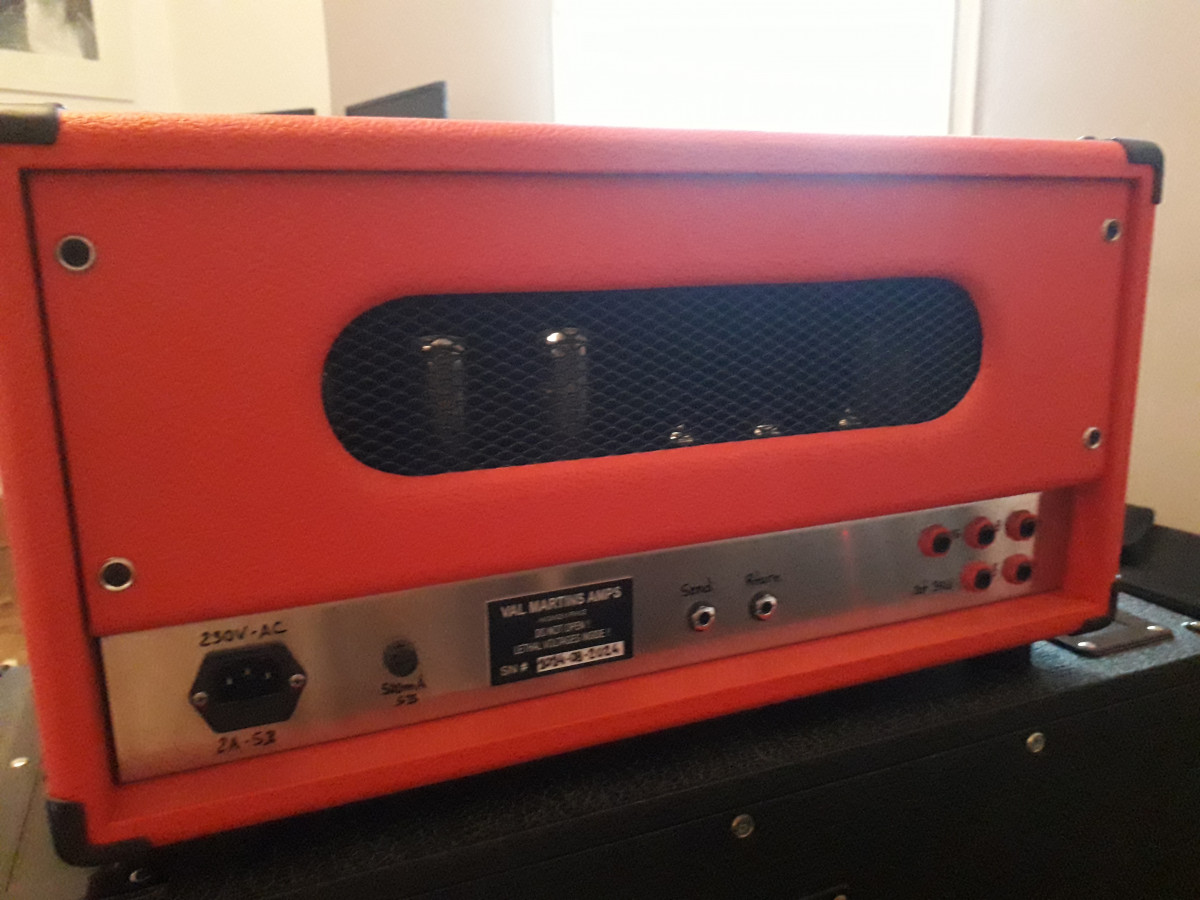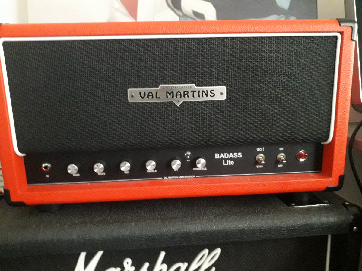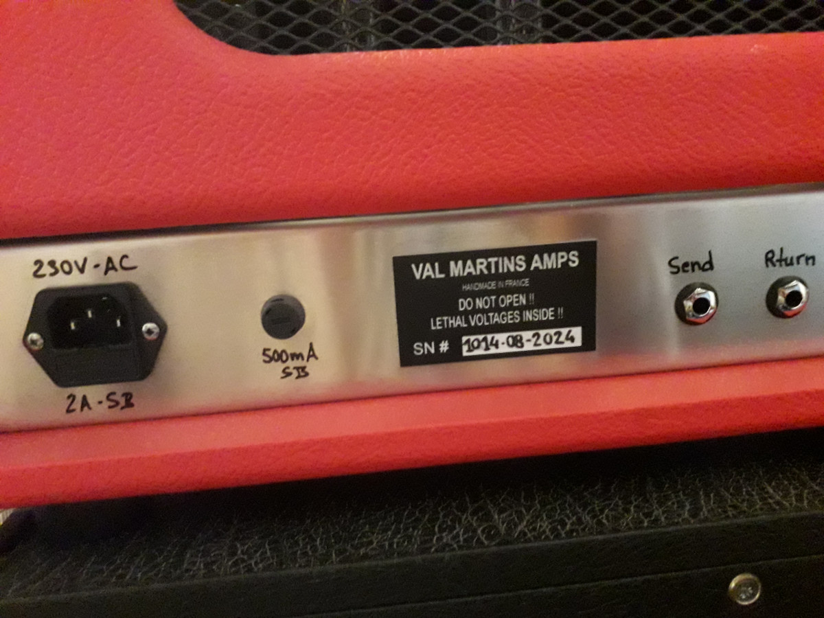 Vends tête 35 watts Val Martins (vous ne la trouverez pas sur son site, le modèle est du sur mesure, les délais actuels de fabrication sont de 2 ans). Coté son le deal était une réplique d’un Marshall like, type ACDC, Led Zepp. Prends extraordinairement bien toutes les pédales. L’ampli a été acheté il y a 8 mois et a très peu tourné (première main, facture).