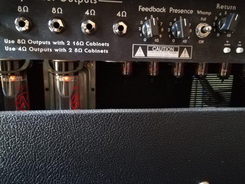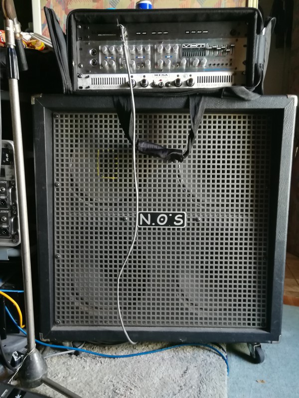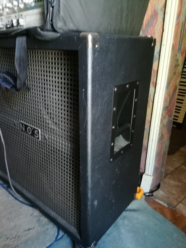 Un 4x12 NOS, avec v30 et Century Vintage, 2x16ohms ou 1x8ohm, très bon état (des griffures sur les côtés quand-même, mais il fonctionne parfaitement bien : Rectificatif : j'avais mal vu, ce n'était que quelques taches, et je les ai enlevées : en fait, il est en excellent état)