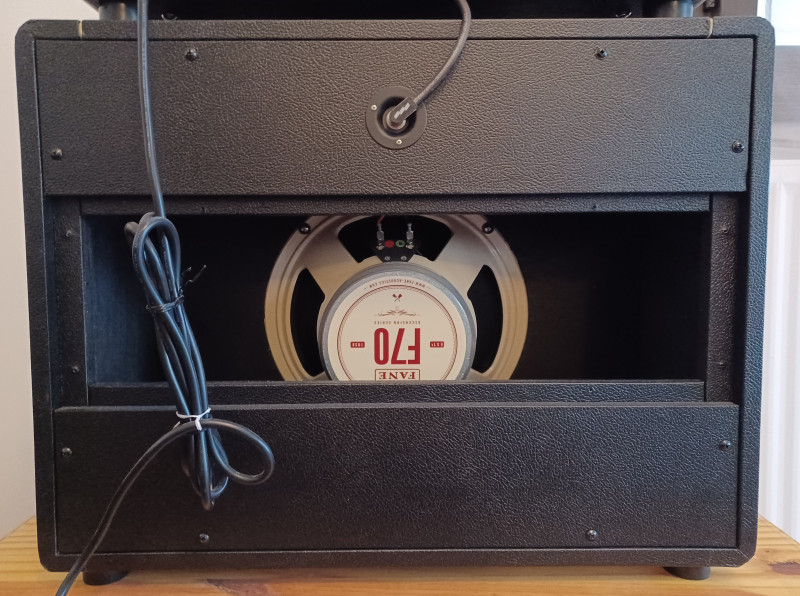 Il est actuellement équipé d’un HP Fane F70 (12 pouces, 8 Ohm) acheté neuf en octobre 2022 qui peut être vendu avec le baffle pour 150€ supplémentaires.