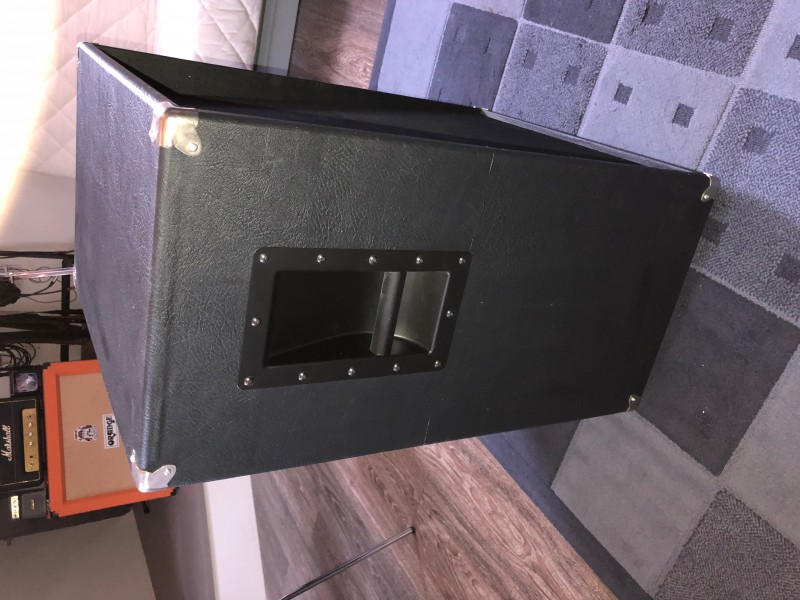 Vends baffle homemade 2x12 vertical. Tolex noir. Façade à 4°. Monté sur roulettes.