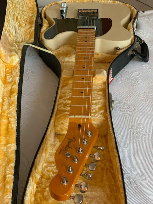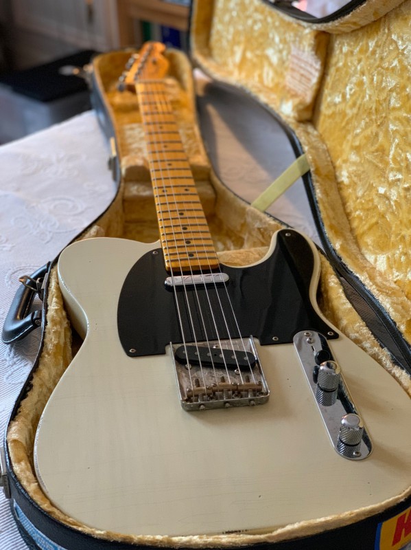 Il s’agit d’une reconstitution de la BlackGuard Esquire ’50s que j’ai faite en hommage à l’Esquire 1953. Je précise que ce n’est pas une Fender, mais une réplique sélectionnant les meilleurs éléments disponibles. J’y ai ajouté un micro manche Fender CS Nocaster pour une plus grande palette de tonalités.
