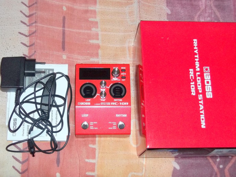 Je vends une pédale Boss RC-10R Rhythm Loop Station Looper en état excellent. avec boite, manuel, alimentation. Un petit bout de peinture manque entre les deux "press twice".