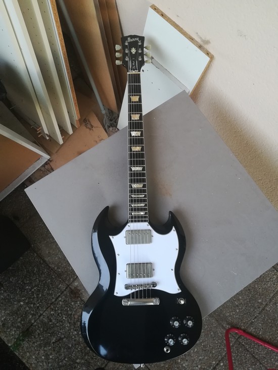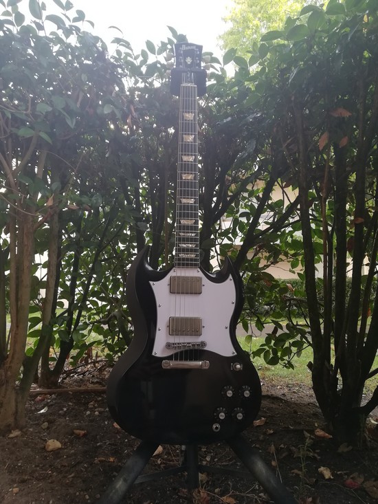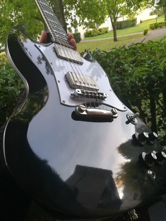 Je vends à regret ma Burny SG des années 80 (par la date précise aucune idée, elle n’a plus depuis longtemps l’étiquette avec le numéro de série).