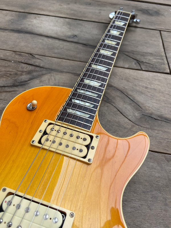 La guitare possède un long tenon et des micros qui permettent d'aborder les plus grands styles de musiques.