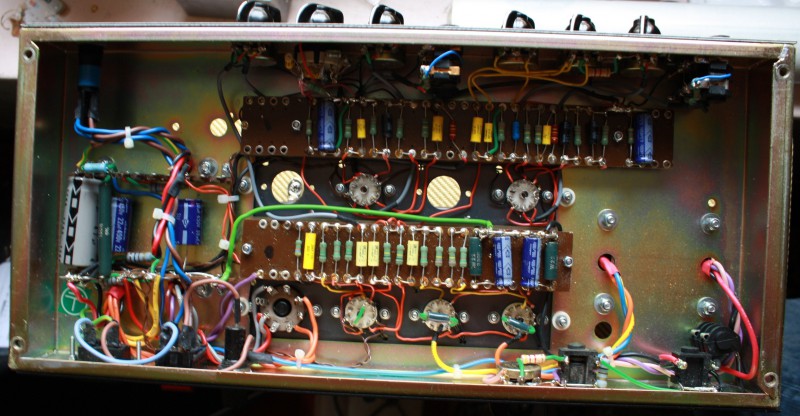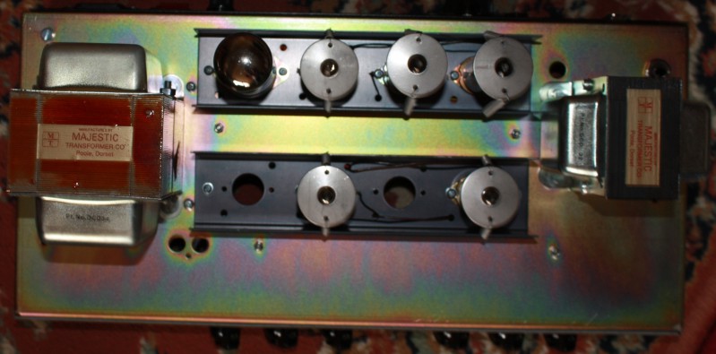 Pour la partie lampe , on a 2 x 12AX7/ECC83 , 1 x 12AT7/ECC81 , 1 x GZ34 en rectifieuse et 2 EL84 en lampes de puissance. Transfo de sortie Majestic
