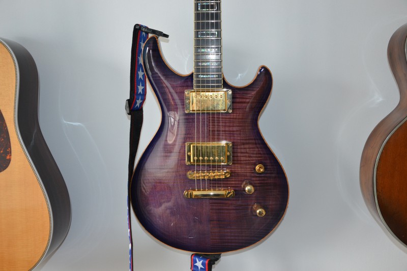 Mahogany body,Flamed maple top, Mahogany set in neck, Ebony fingerboard, Gotoh SG301 tuners, TonePros TJBT bridge, T1Z tailpiece. Transparent Blue Cannon finish.
