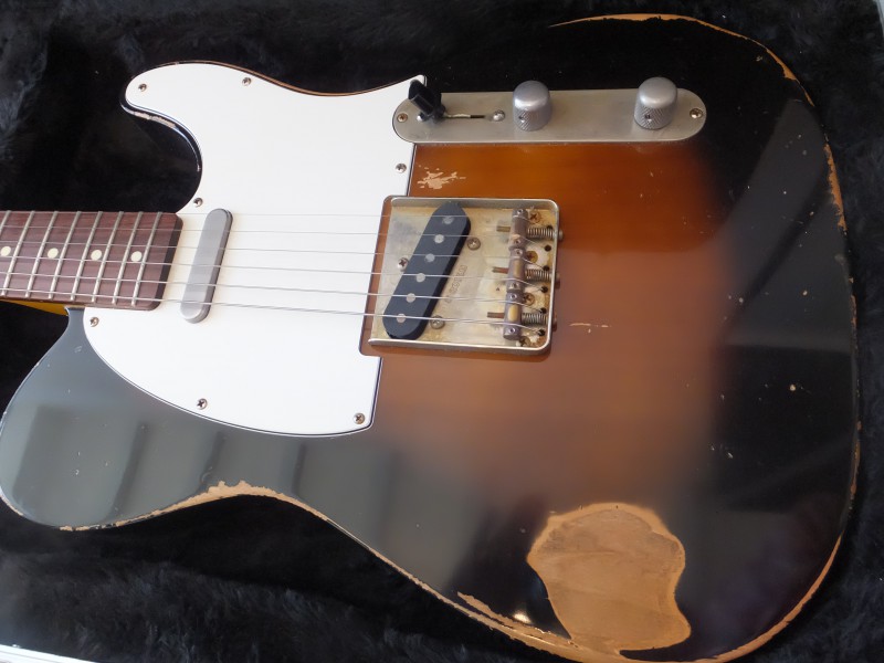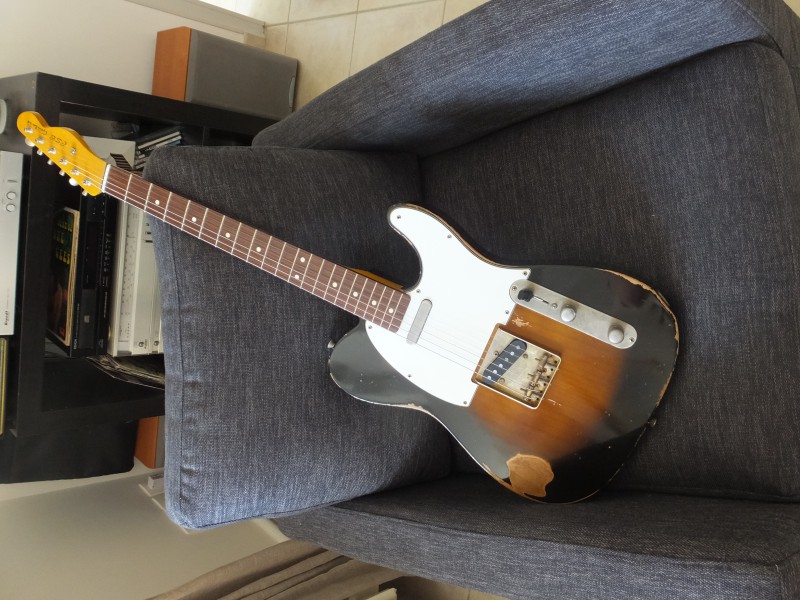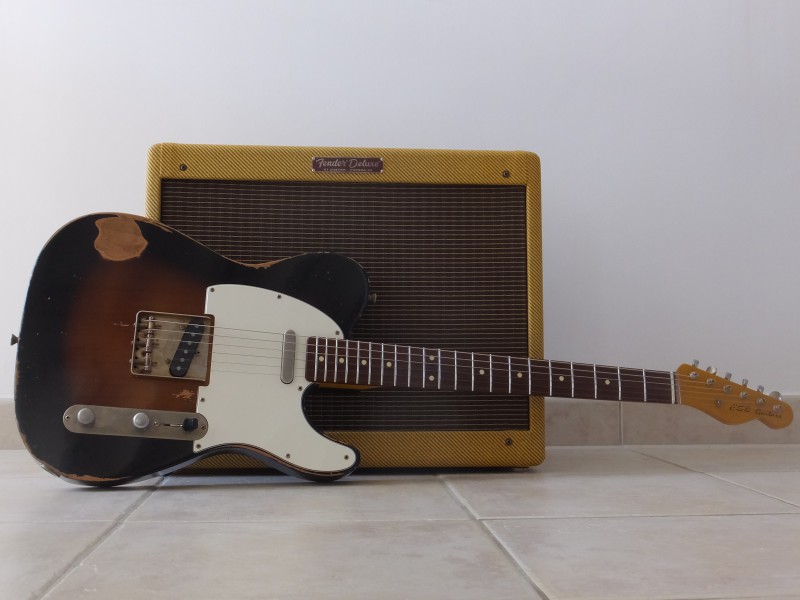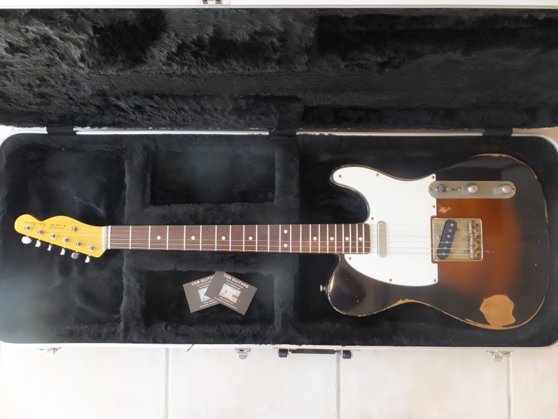 Je mets en vente une CSB T-model Two Tone faded avec un manche en palissandre et sa finition bare wood à l'arrière. Ses micros sont des ST de chez Häussel pour un son "strat" magnifique! La guitare a un an, les frettes sont impeccables.