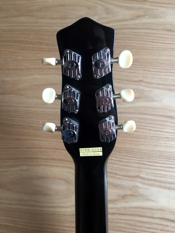 Il s’agit d’un modèle de 1999, soit l’époque ’Evets’ du retour de Danelectro, marquée par une production coréenne d’excellente qualité, et fidèle aux modèles d’époque.