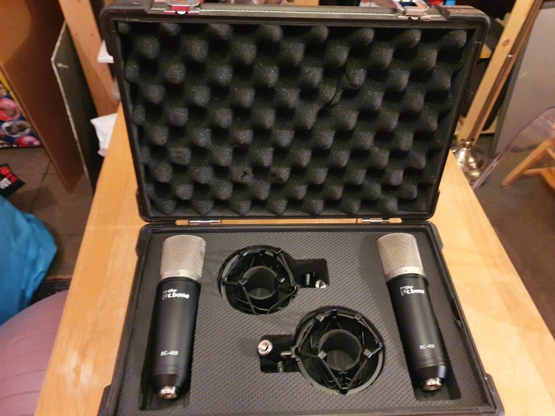Dans sa malette de transport avec les attachés micros pour pieds.