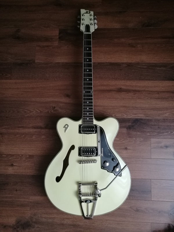 A vendre superbe duesenberg fullerton vintage white dans un état quasi neuf, la guitare est parfaitement réglée, action tres basse !