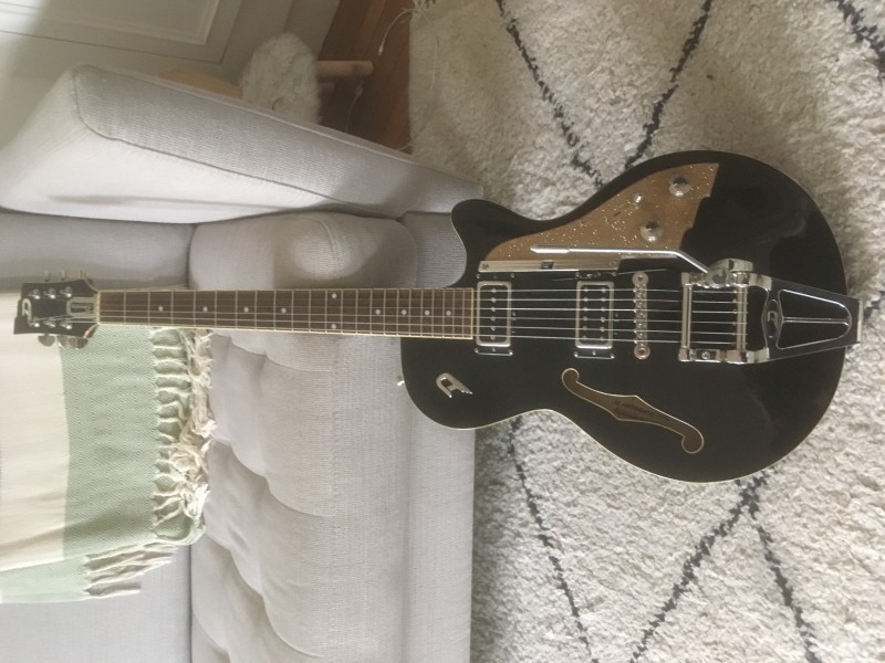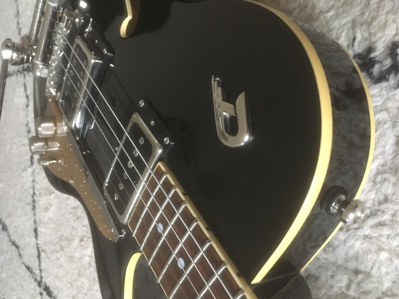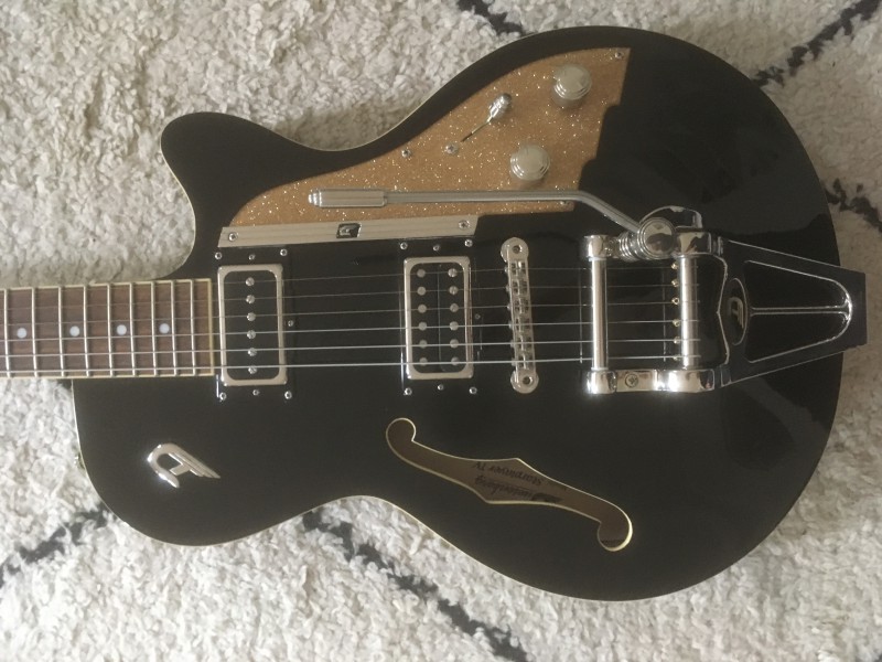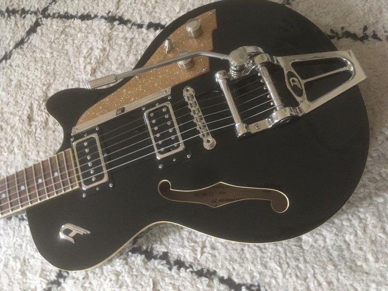 A placer entre une Gibson et une Gretsch, avec un diapason Fender qui en fait un instrument unique.