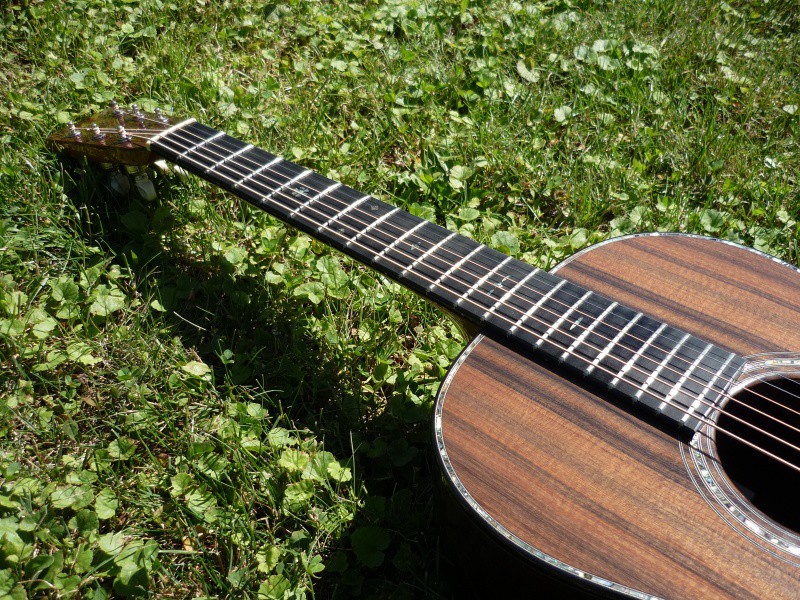 Bonjour à tous, je propose donc ma guitare folk entièrement faites main par Emeric Beaujouan (ancien élève puis collègue de Frank Cheval durant plusieurs années).