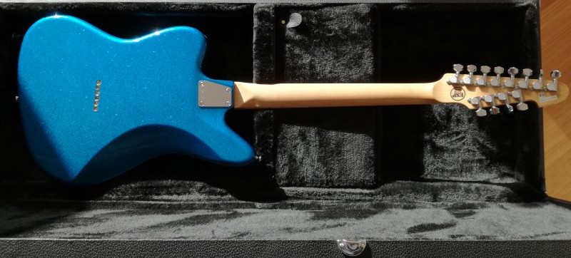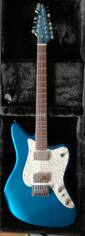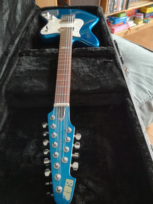 Guitare atypique donc, 12 cordes, électrique, montée en Seymour Duncan .