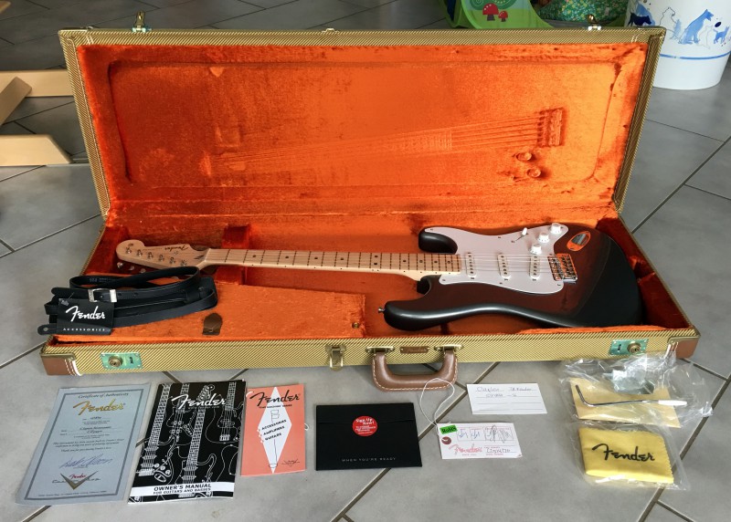 Il s'agit d'une guitare du custom shop modèle signature Eric Clapton en finition pewter (sorte de gris, les photos sont assez fidèles). Elle est en parfait état, quasi neuve, aucune marque.