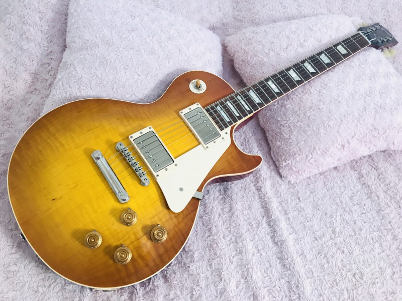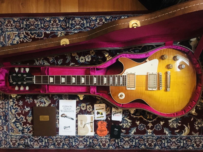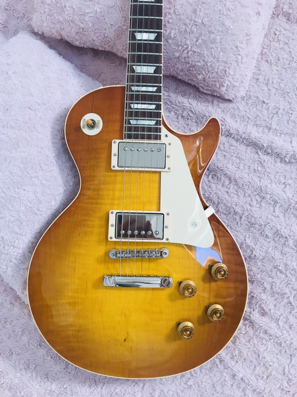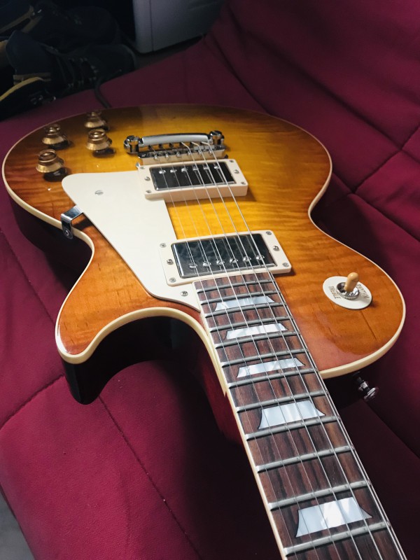 Je souhaite échanger une Gibson Custom Shop Standard Historic Les Paul 1958 Reissue, année 2016, finition Sunrise Tea Burst Gloss. 3,980 kg.
