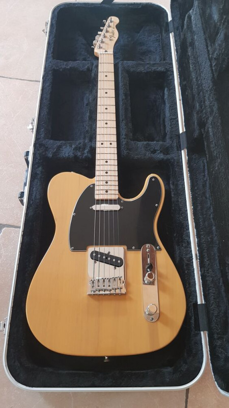 Je propose à l’échange une Fender Telecaster Mexicaine, trés bon état, juste un petit poc sous le corps + case Gator exellement état.