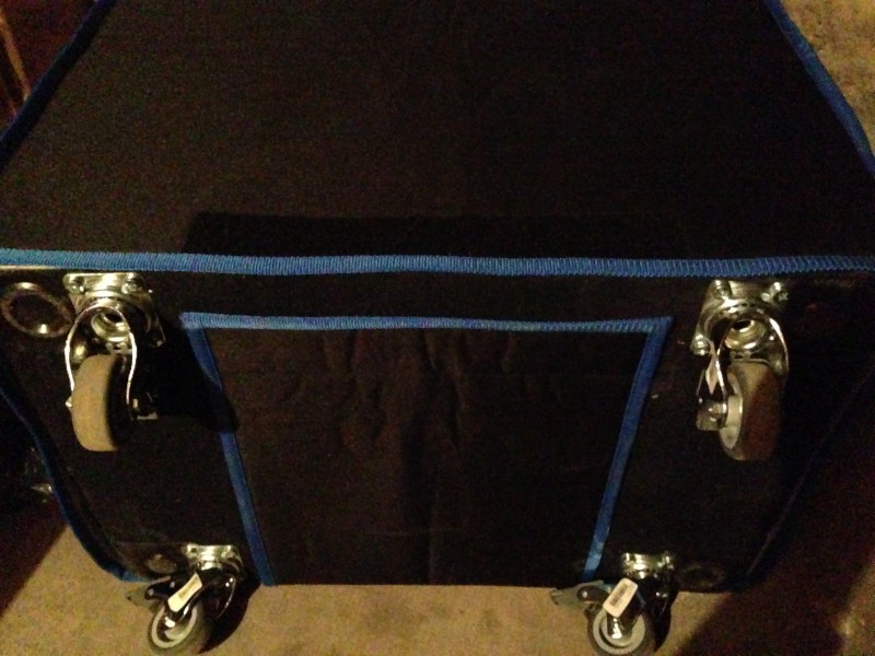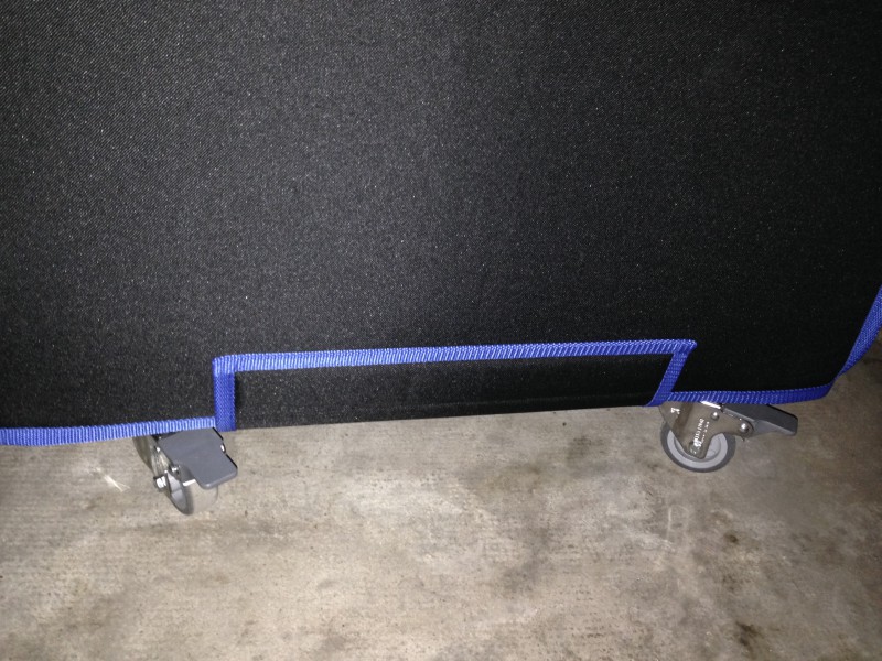 Facilement maniable avec ses deux poignées latérales encastrées, j'y ai ajouté 4 roulettes heavy-duty avec frein pour le déplacer sans effort, une housse sur mesure commandée chez RoqSolid UK.