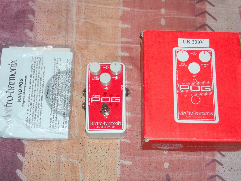 Je vends une pédale Electro-Harmonix Nano POG Polyphonic Octave Generator en parfait état. avec boite, manuel. sans alim (je peux fournir une alim US ou UK). velcro au dos de la pédale.