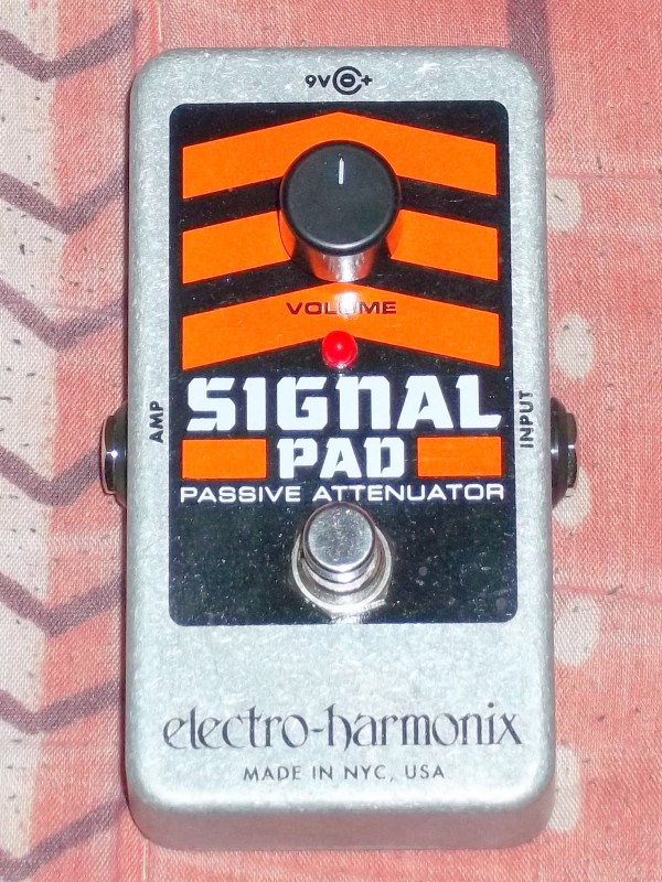 Je vends une pédale Electro-Harmonix Signal Pad Atténuateur passif en parfait état. Sans boite, velcro au dos. permet de passer d’un son saturé à un son clean.
