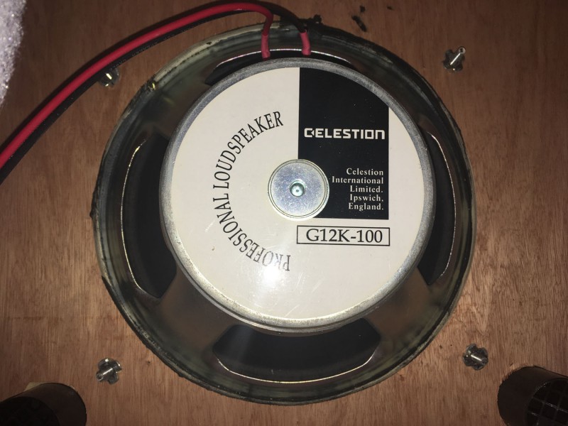 - un baffle « fait maison » (mais acheté tel quel) Celestion G12k-100 12" – pour le gros son – valeur 150€