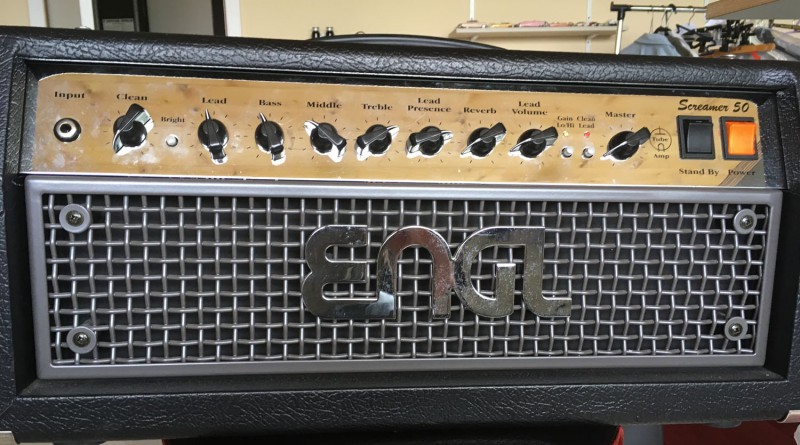 - une tête Engl Screamer E335 50W lampes – achetée neuve en 2011 (chez Fast Forward, Fleurus) très peu utilisée (si je dis une 100ne d'heures je suis déjà généreux). Les 4 lampes de préamp et redresseuse V1 à V4 ont cependant été remplacées en 2017 (après non usage de l'ampli pendant 3 ans) et quasi pas jouées depuis. Attention : la reverb ne fonctionne pas, il faut sans doute la changer (en tous les cas, ça ne vient probablement pas de la lampe puisque c'était une des raisons du remplacement).