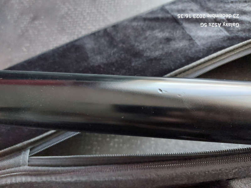 A noter une petite marque à l'arrière du manche qui ne gêne pas le jeu, et un petit éclat derrière la tête (visible sur photos).