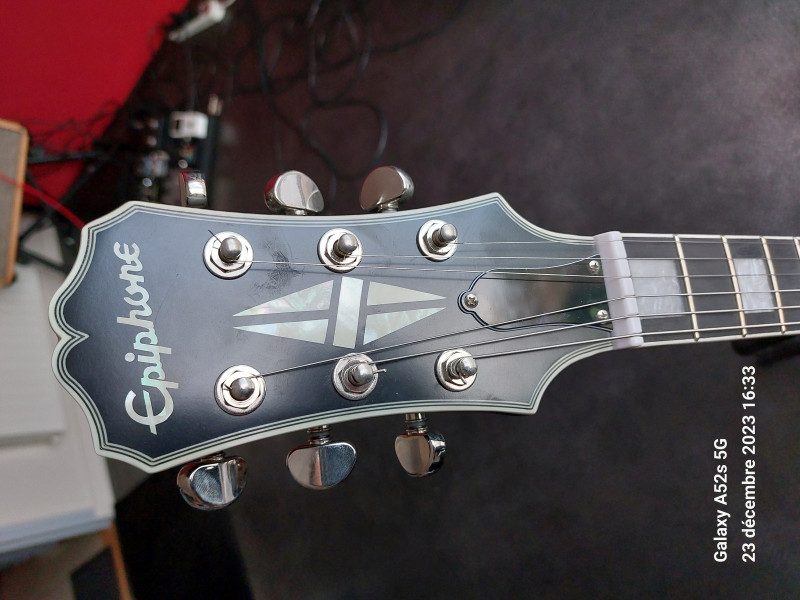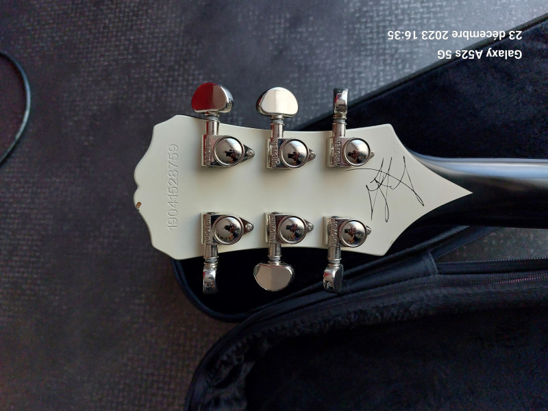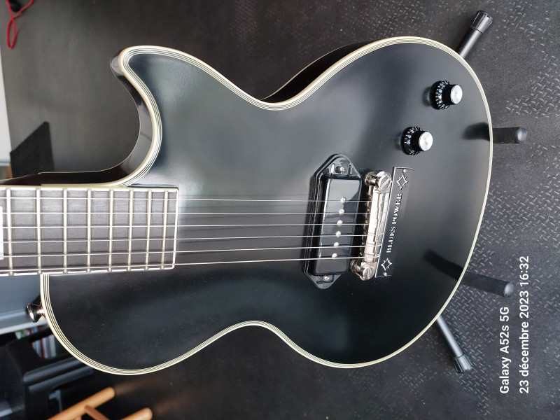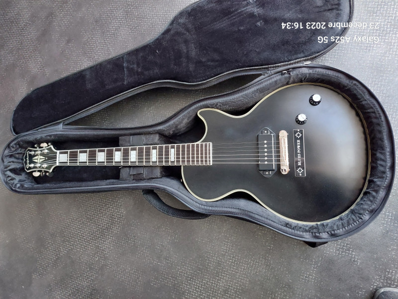 Les Paul Custom junior signature équipé d'un P90 Seymour Duncan, d'une touche en ébène, et de mécaniques Rotomatic Grover très efficace.