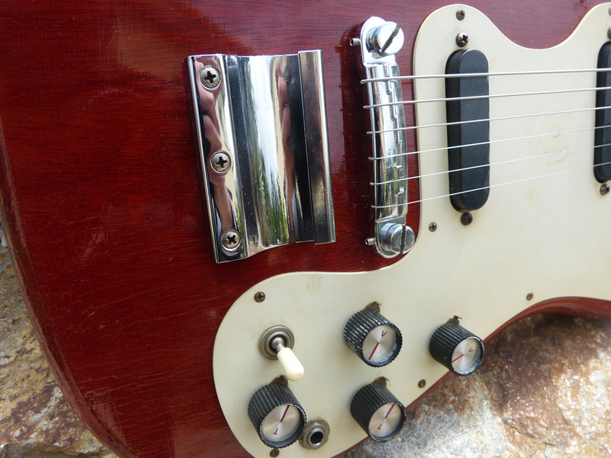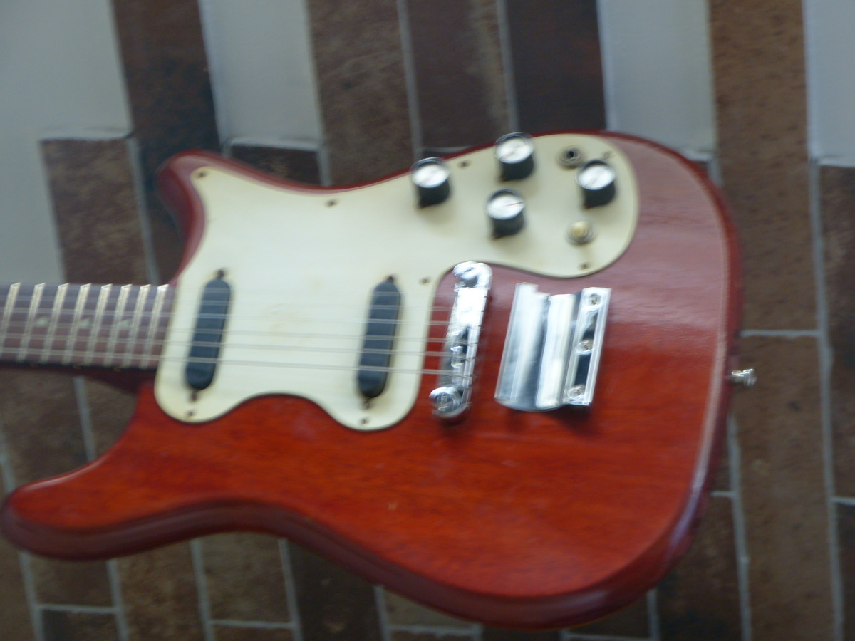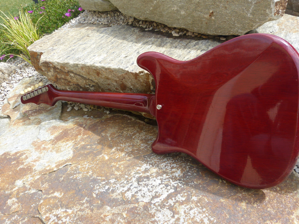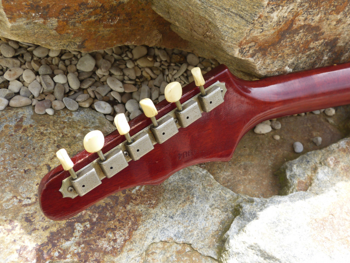 Corps acajou 1 pièce, manche acajou 1 pièce, vernis nitro, 2 micros simples MM d'origine.