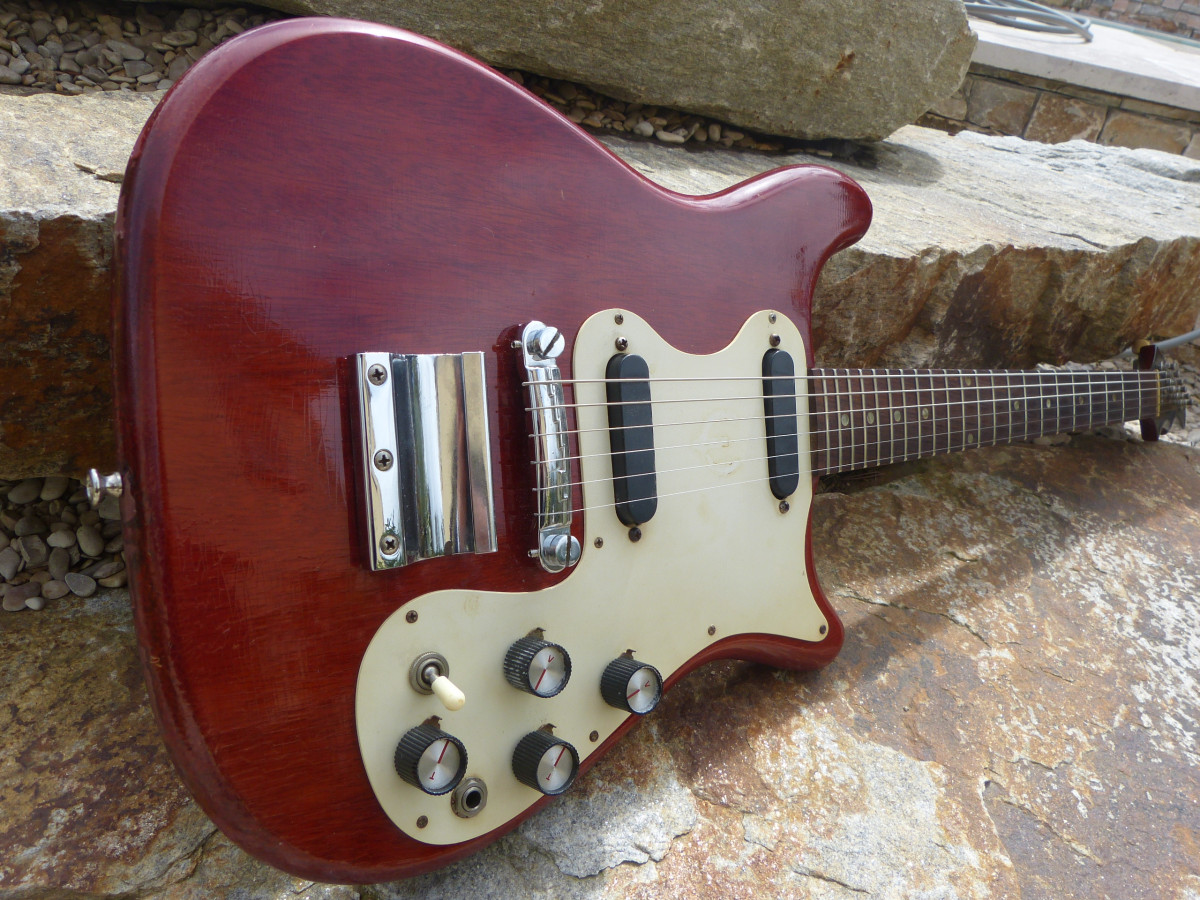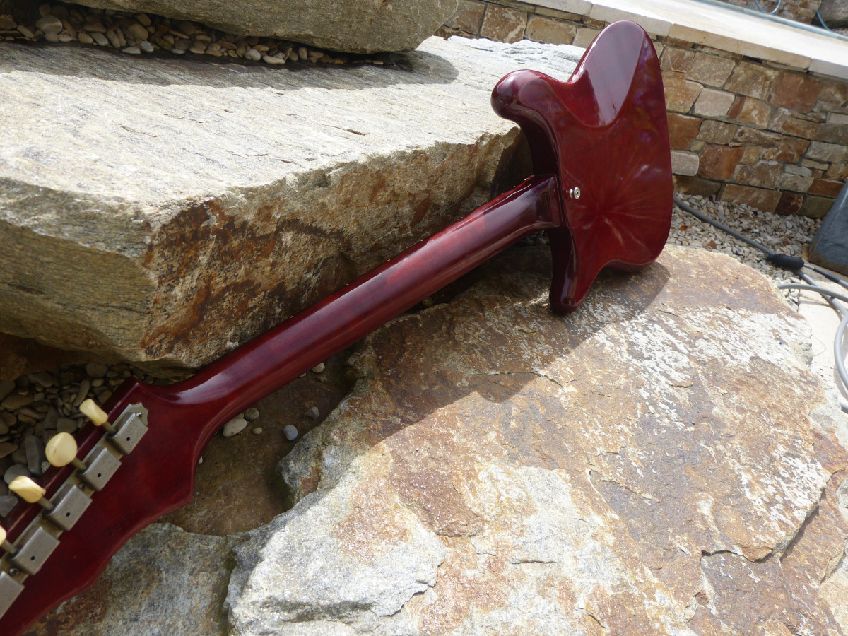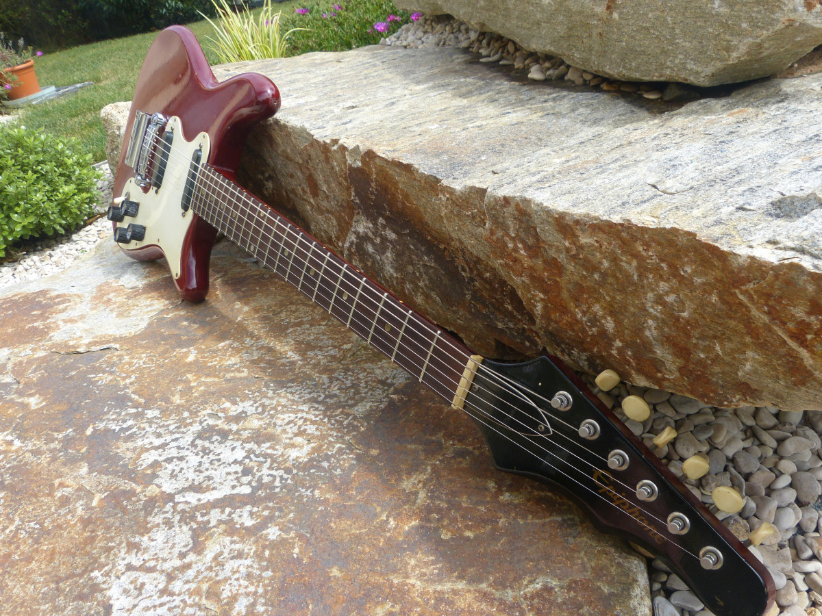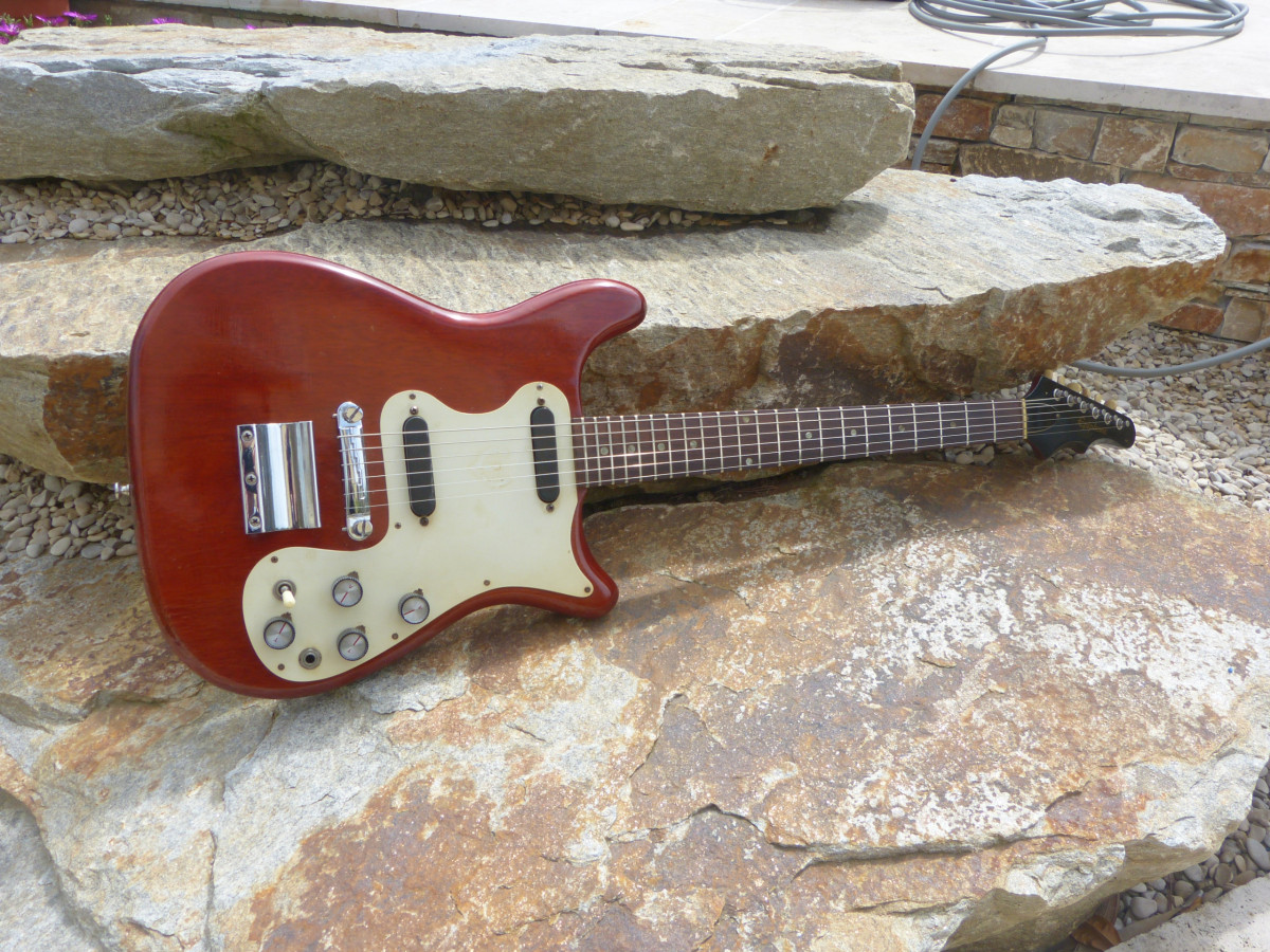 Corps acajou 1 pièce, manche acajou 1 pièce, vernis nitro, 2 micros simples MM d'origine.