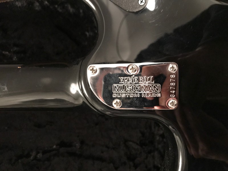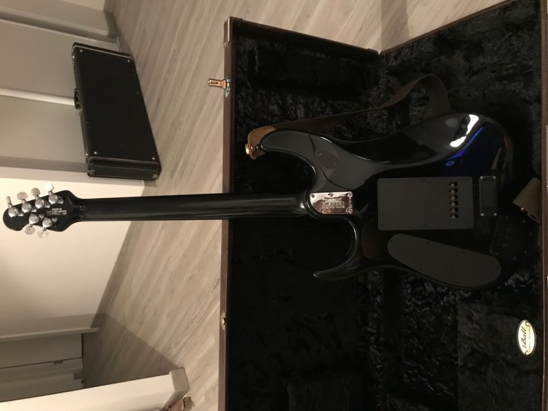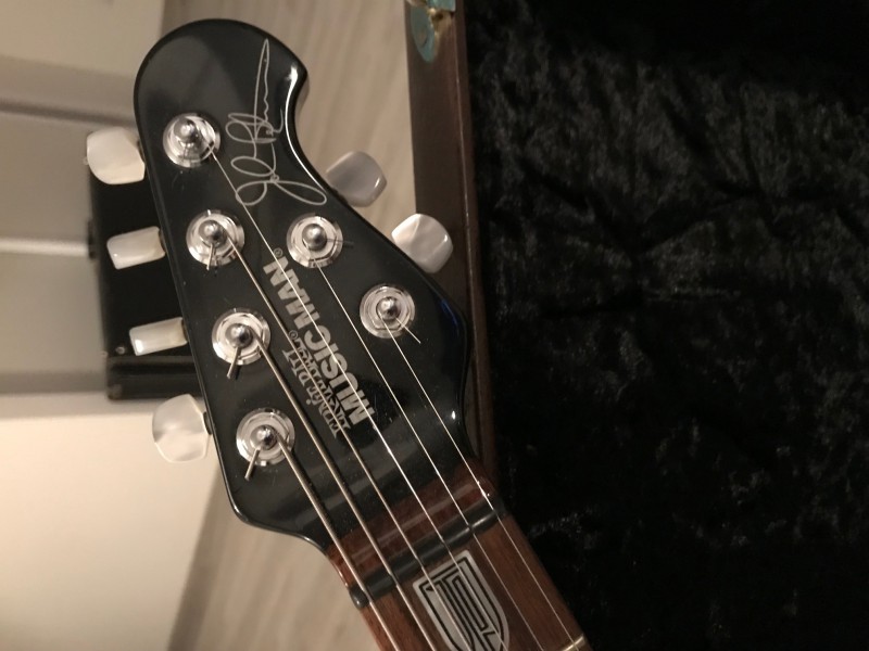 Une autre de mes belles... Une musicman JP6 BFR Transblack, superbe couleur, la plus classieuse selon moi. Elle est excellente en tout point et dispose du systeme piezzo. C'est une guitare a plus de 4000€ neuve...