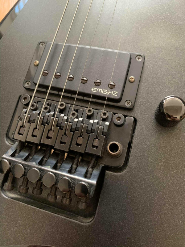 Le micro a été remplacé par un EMG signature laiho, le boost est en push pull sur le bouton de volume.