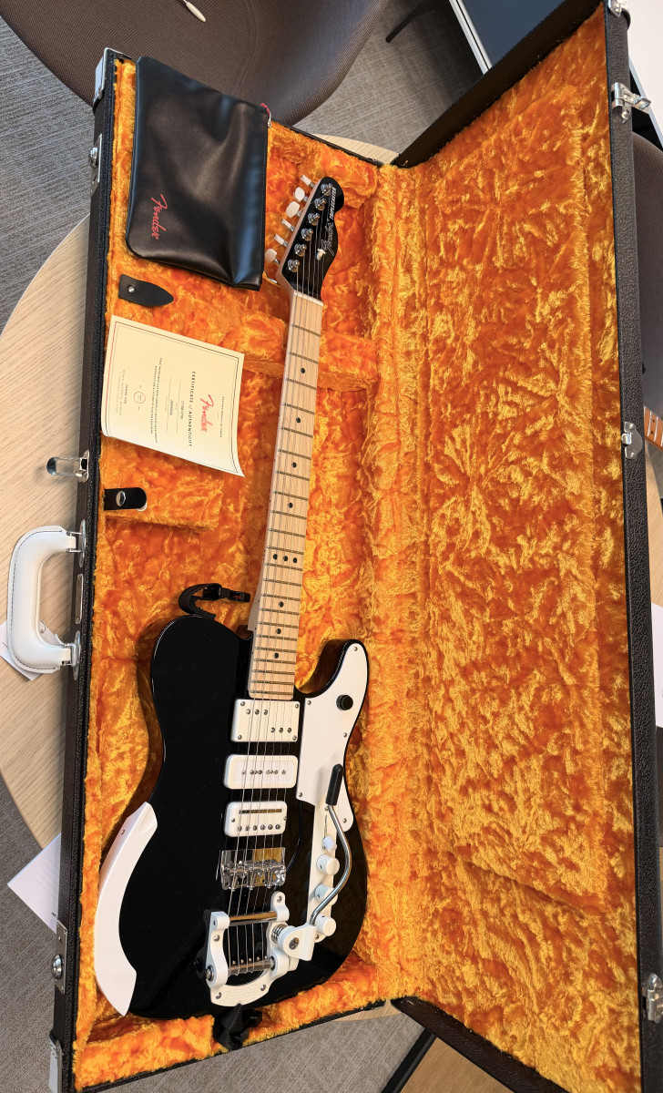 La Fender Telecaster Triplecaster Jack White est un hommage vibrant l'artiste lgendaire, fusionnant innovation et tradition. Dote d'un corps en frène chambré pour une résonance accrue et un son punchy, cette guitare se distingue par sa configuration unique de micros. Elle combine un humbucker Wide Range aimants CuNiFe au manche, un micro simple JW-90 au centre, et un humbucker custom Jack White au chevalet. Le manche en rable, au profil "Soft V" 50's, offre un confort exceptionnel, tandis que le vibrato Bigsby B5 permet des effets prcis. Avec son sélecteur arcade « Stutter » et son accastillage en epoxy blanc, la Triplecaster incarne l'originalité et l'audace de Jack White.