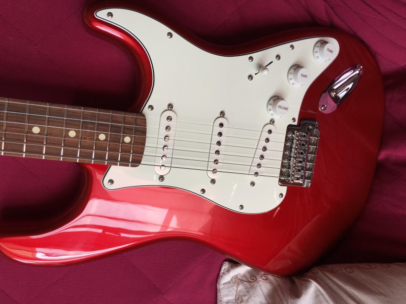 Achetée en mars 2018 avec facture .comme neuve, Micros alexander pribora red white et bloc vibrato métal installé (ceux d origine fournis) quelques marques tres superficielle a l avant du corps (il faut vraiment etre pres et sous une grosse lumière pour les voir) aucun echange, remise uniquement en mains propres a mon domicile. Housse basique fournie.. essai sur ampli hugues&ketnner, photos sur demande.