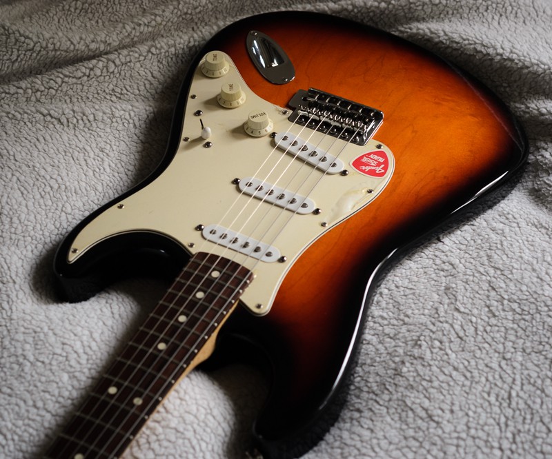 Je mets en vente cette magnifique Fender Strat’ Mexicaine de 1995. La particularité de celle ci est que malgré ses 25 ans, elle est comme neuve… à tel point qu’il y a encore le film plastique protecteur et le petit sticker Fender sur le pickguard !