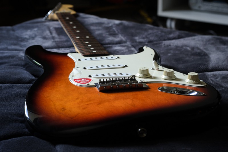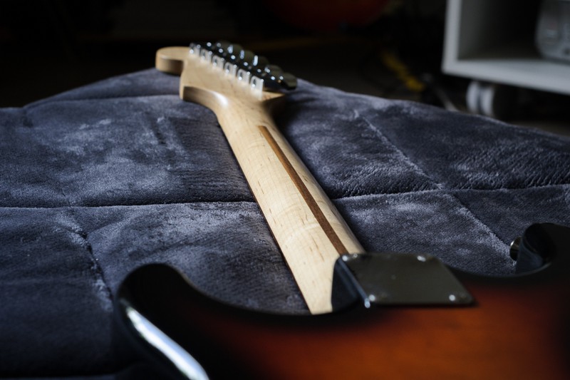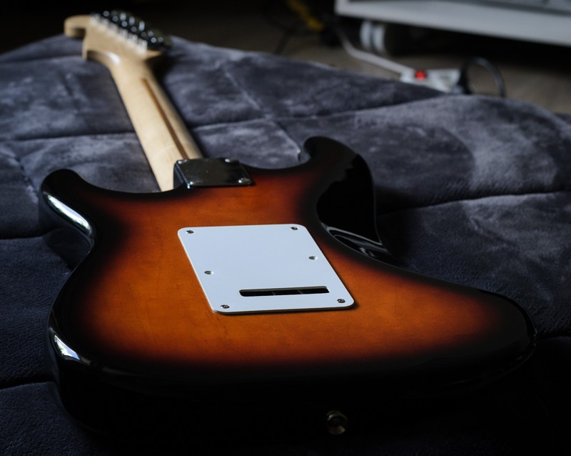 Concernant la gratte en elle même, le manche est super confortable et elle sonne de façon surprenante. Bel équilibre tonal, on sent que les bois sont secs, c’est très chaleureux mais dynamique et un sustain surprenant pour une Strat : elle a du coffre ! Bon point, elle est aussi très silencieuse et ce sur toutes les positions.