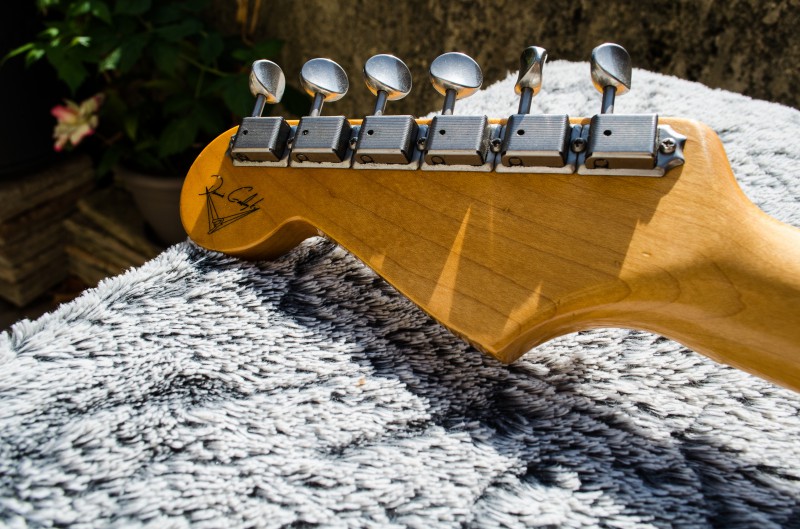 - Accessoires : livrée en étui Fender Custom shop "G&G The Original Vintage Case Co." center pocket tweed case, Sangle Fender, Straplocks, Cable, Polish, Certificats d'authenticités (un signé par Denis Galuszka, l'autre signé par Maria Elena)
