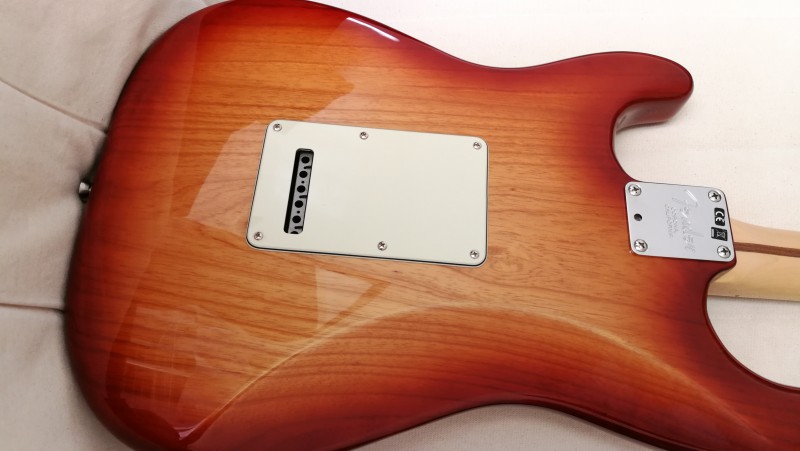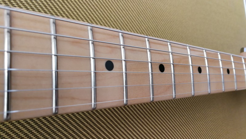 Corps en frêne (2 parties centrées) et manche érable (raduis 9.5 et un profil en C modern) : facile à jouer et super confortable avec sa finition satinée - Elle pèse 3,4kg -