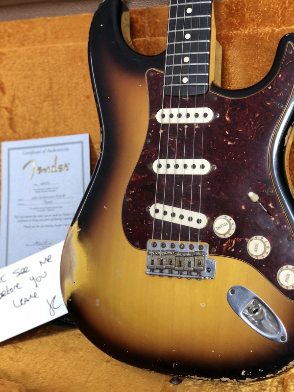 Vends ma Stratocaster Fender custom shop de 2007 qui avait été choisie à l’epoque Pour le Mur Fender de la MusikMesse de Francfort en 2007. A l’epoque, John Cruz avait laissé un message à l’acheteur au dos du stocker Fender. C’etait L’epoque Des Heavy Relic et celle ci est un excellent spécimen.