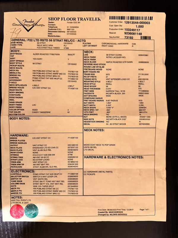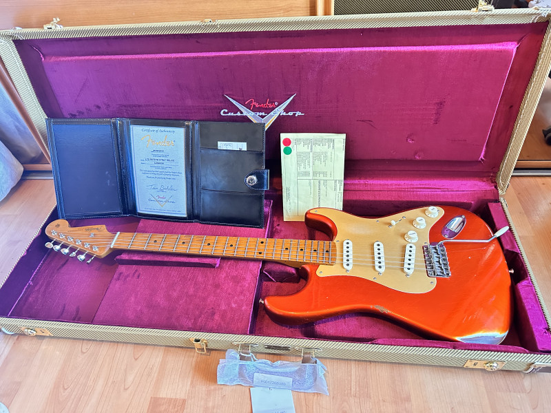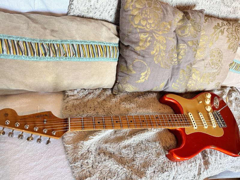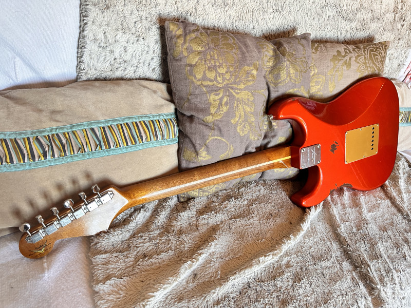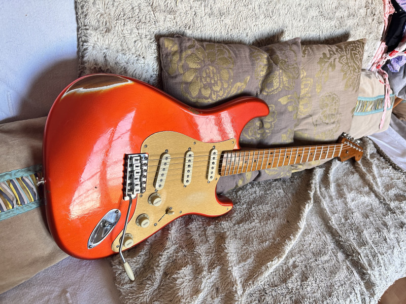 Vends cette exceptionnelle Strat custom Shop 56 Limited Relic en finition Candy Tangerine.