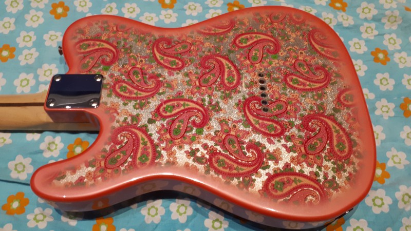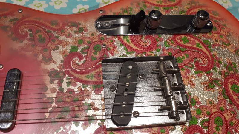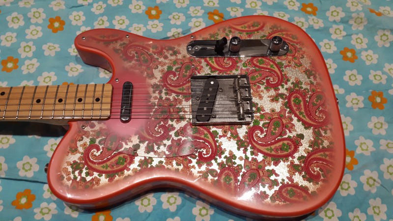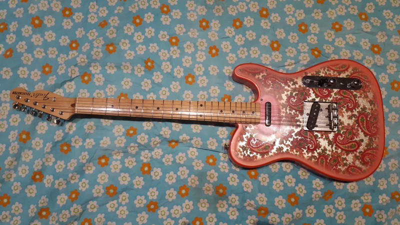 État excellent. Quelques micro pocs sur la pointe de la tête mais c’est tout. Frettes, truss, micro, manche, mécaniques,… tout est nickel. Pas trop lourde. Super son, super look, super gratte. Envoi soigné possible.