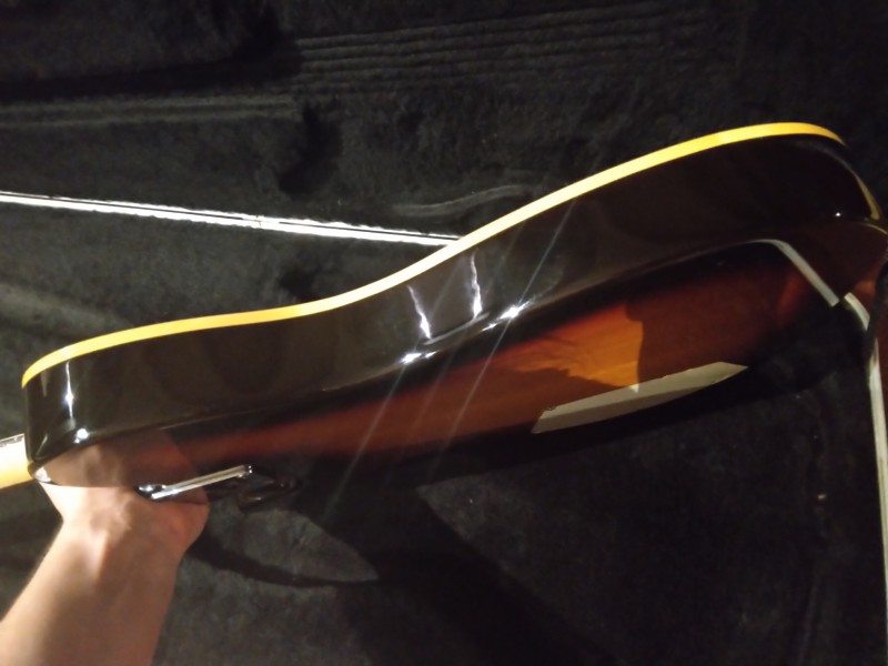Les frettes sont en super état (refrettage en cours de route à priori) réglage action basse, pas de frise.
