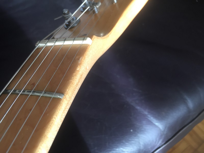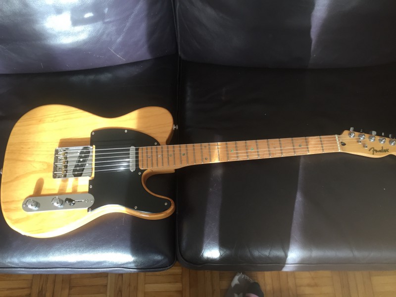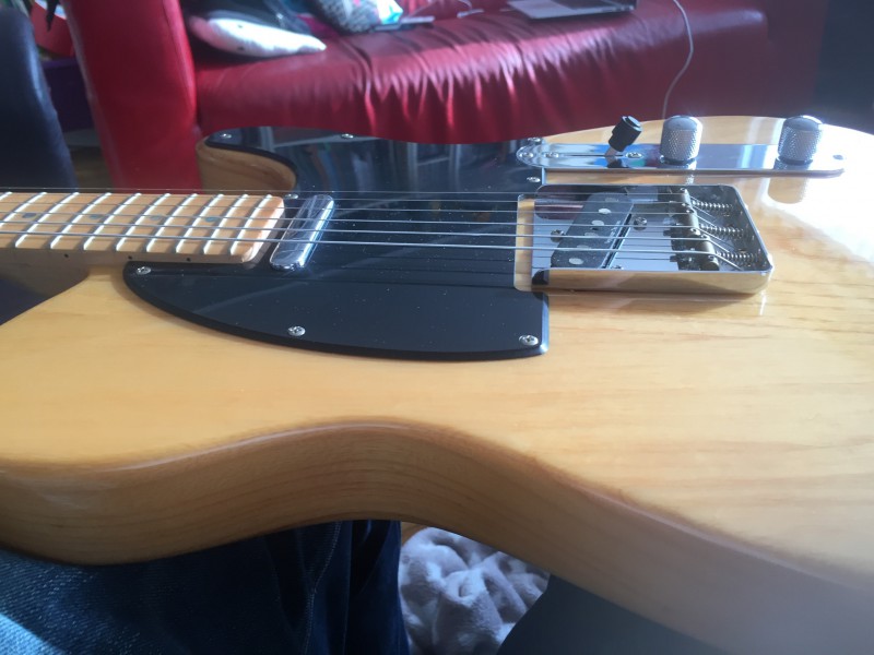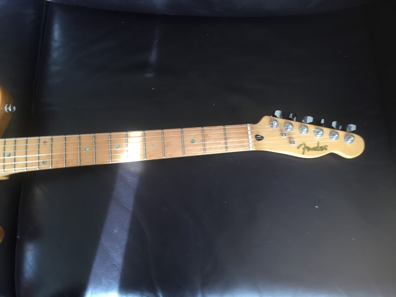 Bonjour, je mets à vendre une Superbe Fender Telecaster Lite Ash en Très bon état (juste un petit coup sur la tranche du manche qui n'entrave pas du tout le jeu), les frettes sont en bon état (un peu d'usure sur les premières voir les photos), les cavités sont blindés à l'autocollant cuivré, micros seymour, manche birdeyes du plus bel effet.
