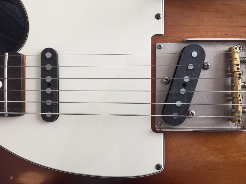 J’ai ensuite fini par installer des micros Rio Grande Vintage Tallboys, après être passé par d’autres micros (David Allen). Je les trouve parfait dans un registre Tele vintage, avec un micro manche plus ouvert, moins sourd que la plupart (pas de capot dessus). Je fournis les boîtes des Rio Grande.