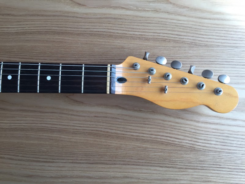 Par la suite, j’ai fait changer le manche pour un manche touche palissandre un peu plus fin et plus à mon goût (je n’aimais pas l’aspect relic du manche d’origine, qui était aussi un peu trop large pour moi)
