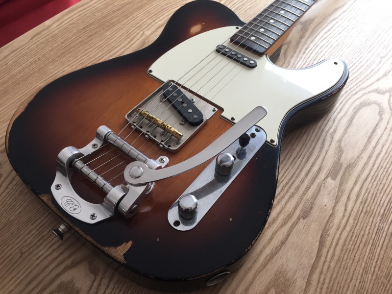 J’ai ensuite fait installer un Bigsby de chez Callaham (fabriquant américain de pièces détachées exceptionnelles), qui tient bien mieux l’accord qu’un de la marque Bigsby (j’ai pu comparer avec une ES330 équipée d’un Bigsby, qui tenait très mal l’accord…)