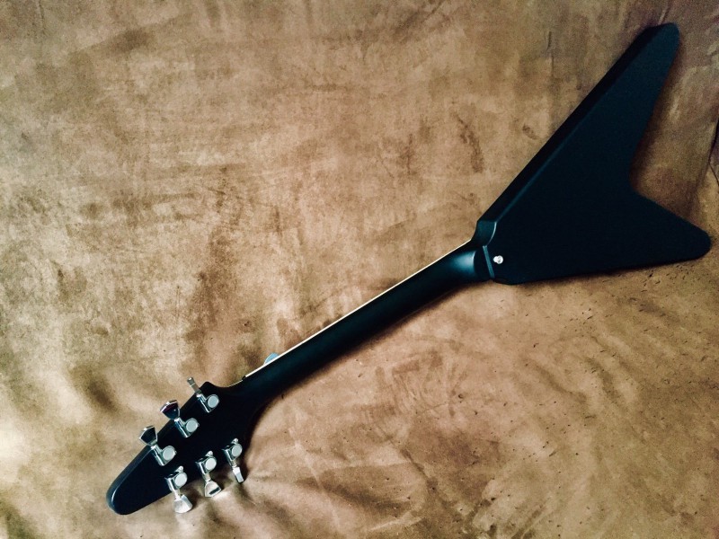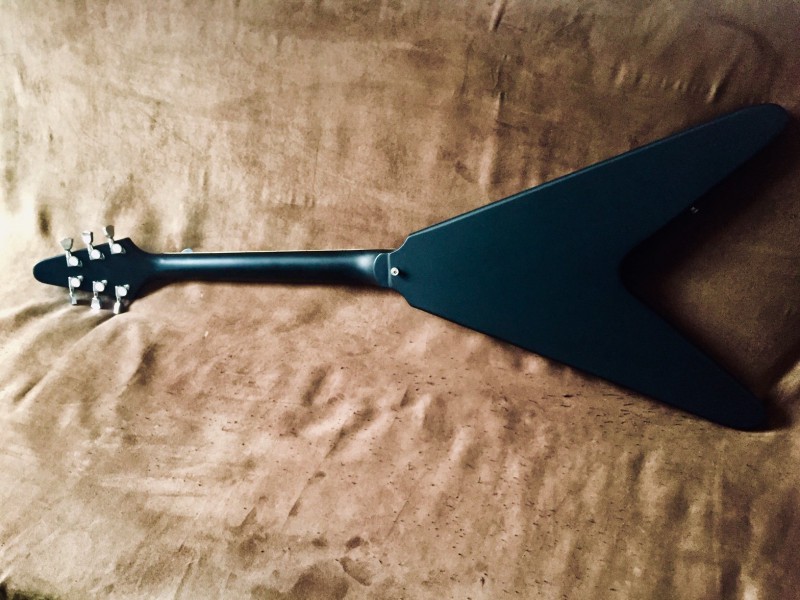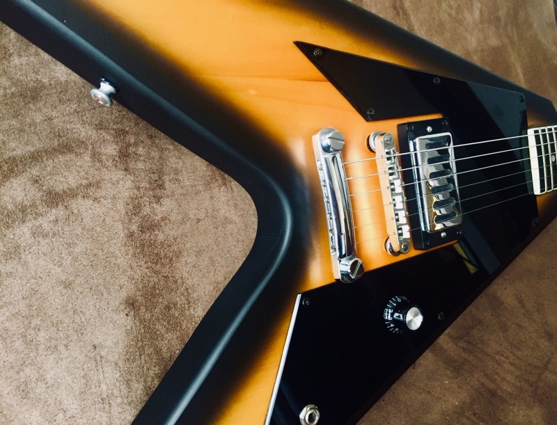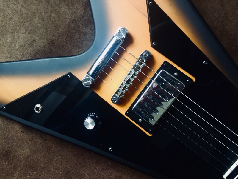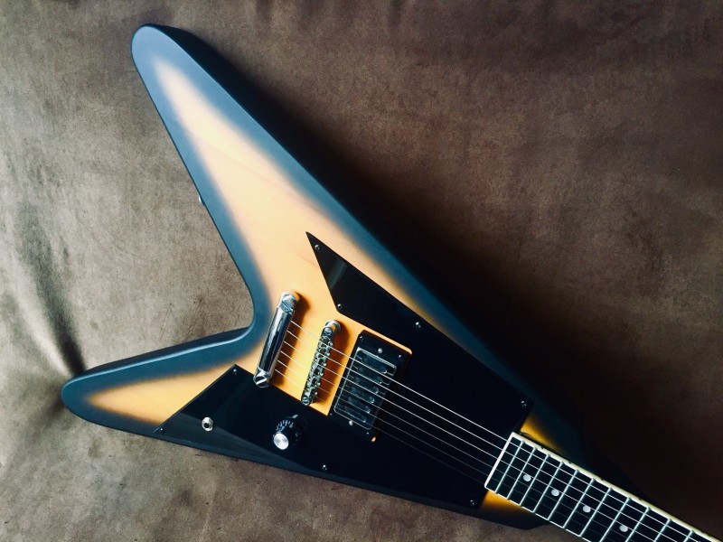 L'historique : je voulais une V. Je la voulais vintage blues-rock like, pas une typée métalleuse. Je la voulais mono-micro. Et idéalement, je la voulais faded.