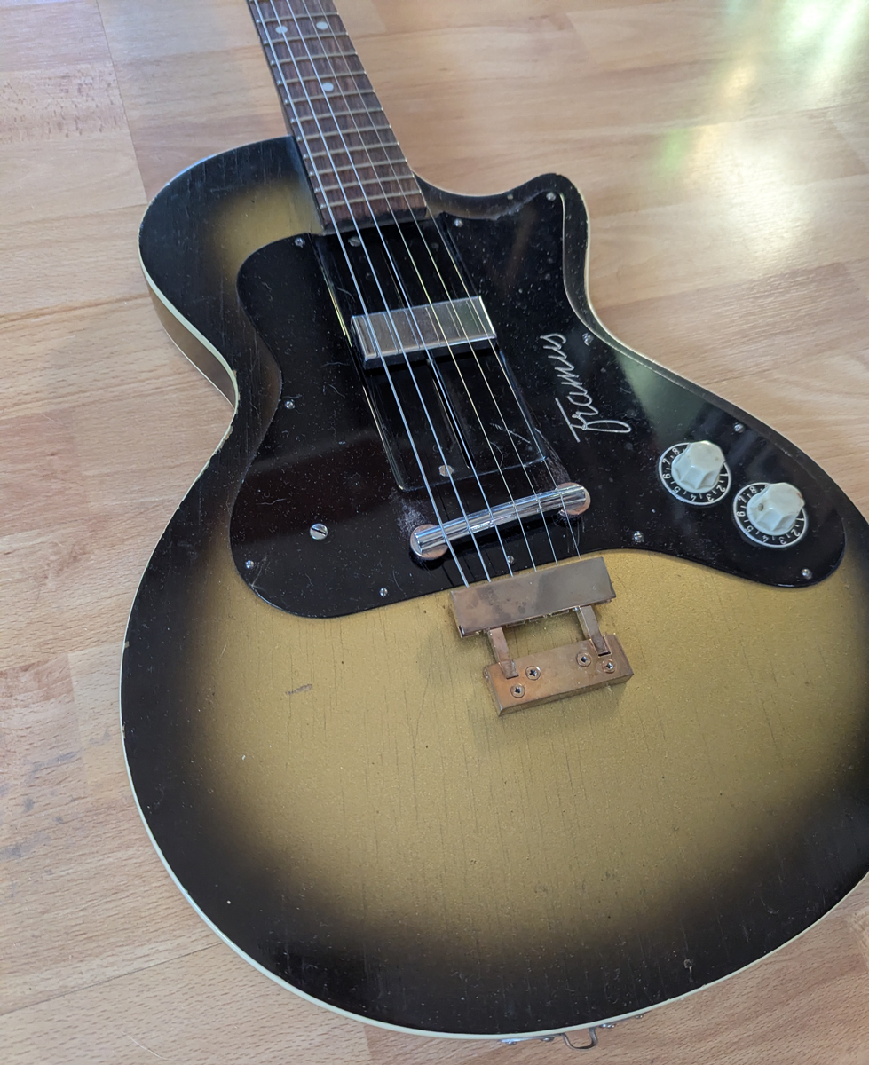 A part ça c'est une guitare qui a plus de 65 ans !!! Elle est pas neuve mais c'est un joli morceau d'histoire.